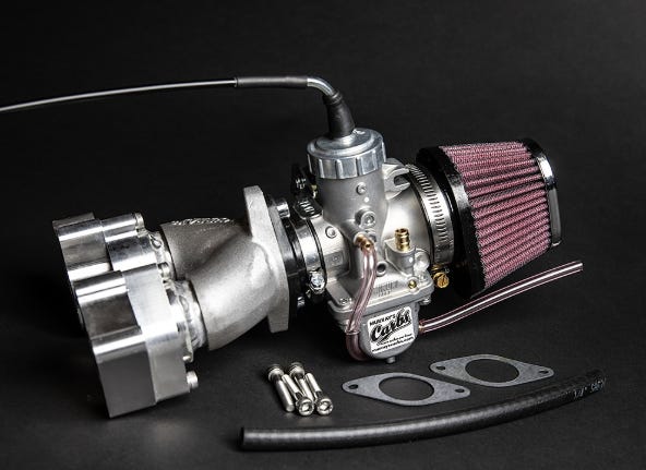 Also, if you have a kick start motorcycle, the accelerator pump is a handy feature, because with a single twist of the throttle, your accelerator pump will squirt a small amount of fuel into the intake, and give your engine something to pop to life on, hopefully with the first or second kick.