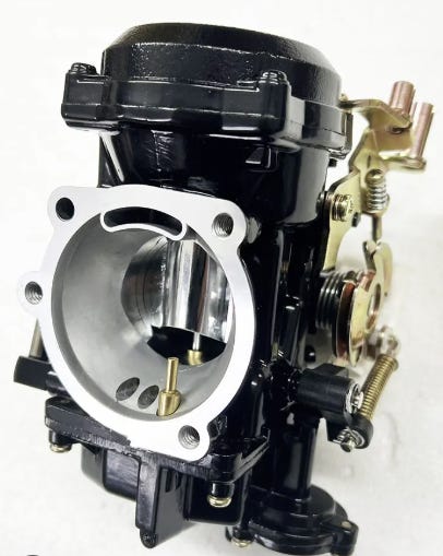 The next most common is the mechanical cable pull carburetor and the fully mechanical carburetor. Mechanical cable pull carburetors are found on most imported post war motorcycles until the mid-70s. They are still used on dirt and small displacement single carburetor applications to this day. Fully mechanical carburetors are generally operated by a series of linkages and levers that make all the functions happen. They were used on early 70's inline four cylinders.